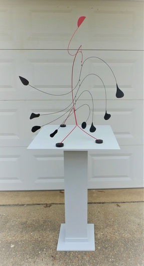 Free standing and hanging mobiles made of soldered brass, or a combination of brass rods and wood. The wooden components of each mobile are painted using an acrylic paint, while the all brass mobiles are painted with spray enamel.